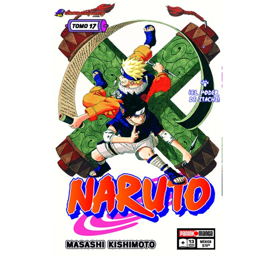 Naruto sale de viaje para entrenar con Jiraiya, cuando llegan unos extraños visitantes… ¡¿Cuál es el objetivo del hermano de Sasuke, Itachi, y de Kisame Hoshigaki?!?! ¡Intentan llevarse a un petrificado Naruto, pero Sasuke interviene! ¡Un tomo cargado de suspenso! ¡No te pierdas Naruto #17!