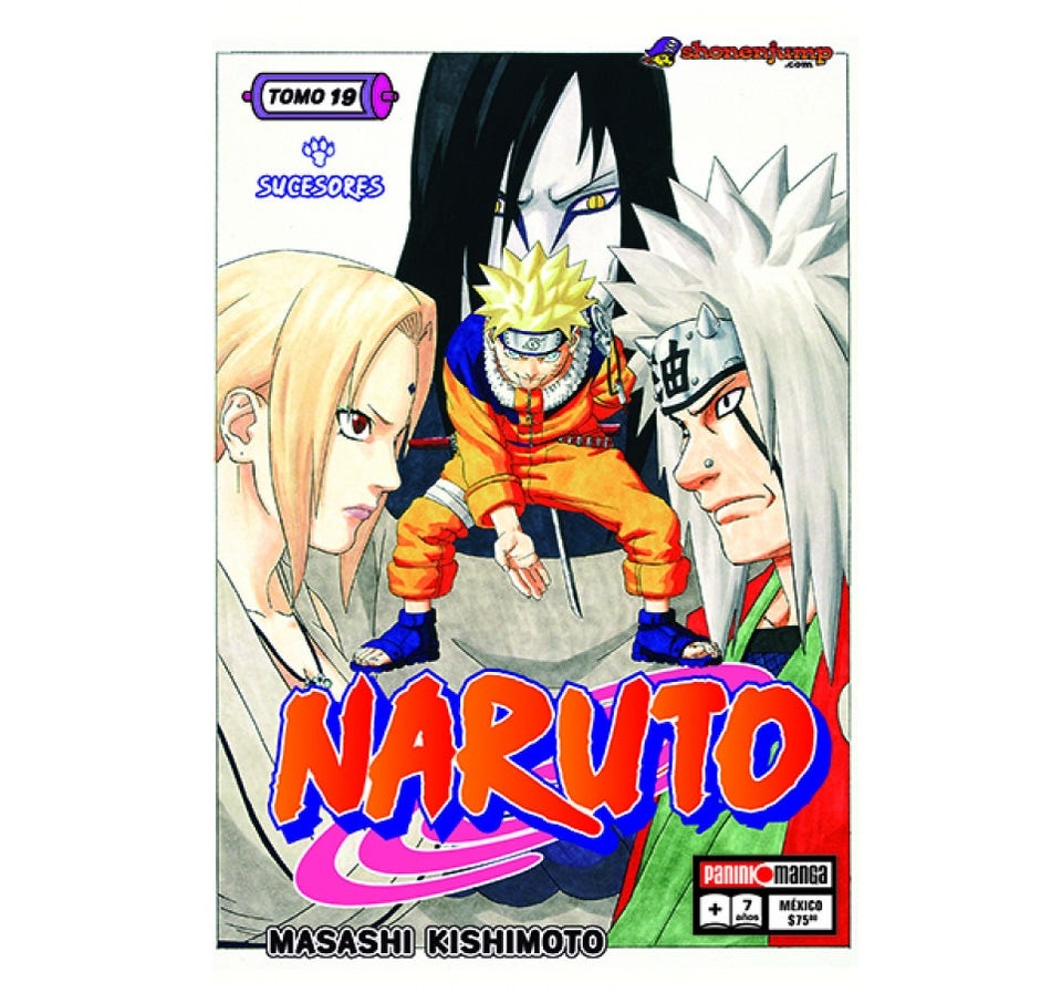 “Sí, justo esos sentimientos son los que no se van”. La existencia de Naruto fue lo que acabó con la indecisión de Tsunade! ¡Orochimaru y Kabuto contra Tsunade, Jiraiya, Naruto y Shizune. ¡Comienza una batalla sin igual! No te la pierdas, en Naruto #19!Lo más importante para un shinobi es que tenga las agallas para no rendirse.–JiraiyaTodo lo material se pudre al final.–OrochimaruSolo una vez, quisiera volver para apostar de nuevo por ti.–Tsunade